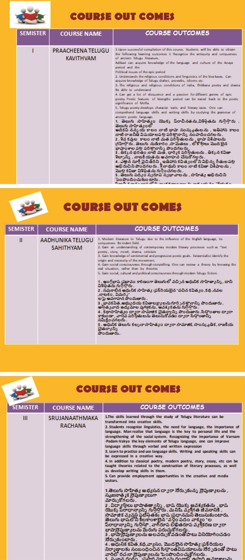 Language subject which embeds of all courses in this institution. The Department of Telugu has